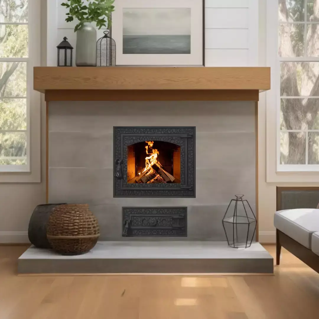 Дверь чугунная Рустик Раздельный 46х40 см со стеклом подходит для камина/печи/барбекю